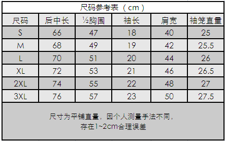 • 尺碼: S  M  L  XL  XXL  XXXL